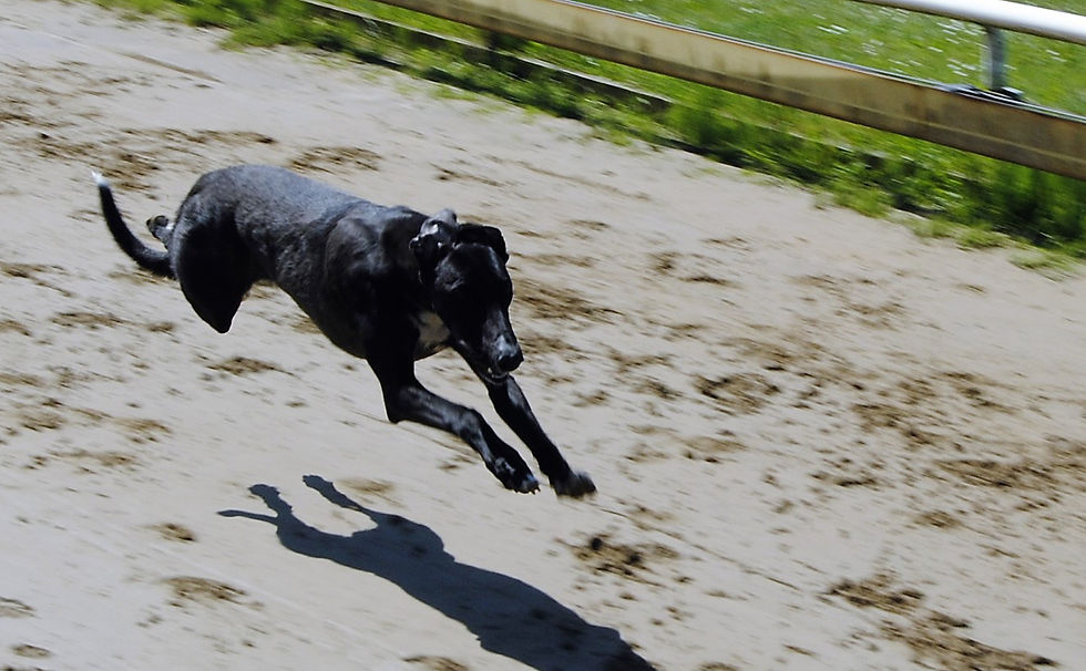 I väntan på Avelsloppet med Il Divo (nästa helg) tog vi en träningsdag på Landskronabanan i dag. För vårt nyförvärv Stunning Kisses (Tuffsy) var det allra första bekantskapen med innerhare och allra första träningen på svensk mark. På Irland hade hon bara hunnit ett enda triallopp så vi hade inga större förväntningar. Tiden var heller inget att skriva hem om (20,0) - vilket dock delvis berodde på att hon sprang ikapp haren två gånger och fick börja om - men hon löpte på bra och klarade omställningen till innerhare alldeles utmärkt så det ska nog bli bra det här vad det lider. Hon var hartänd och jagade utmärkt.