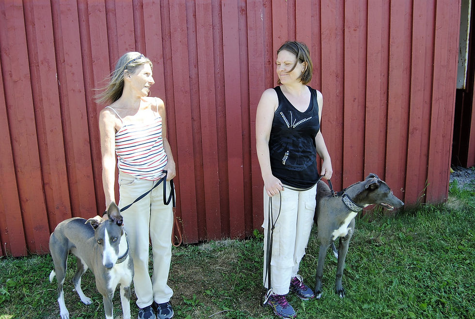 Apropå valpar, ja. För exakt ett år sedan i dag föddes vår första kull här på Blidingia Racing, Mockingjay-kullen efter Killishin Jamar och Kacela (Zoe). Dessa valpar är numera unghundar och tränar riktigt fint på banorna runt om i Sverige och Danmark. I dag såg vi Nicke (Finnick Odair) gå ett varv i Landskrona och det såg riktigt bra ut! Katniss fick gå en kurva och det såg också jättebra ut fart- och jaktmässigt. Däremot behöver hon tid på sig för att hantera sin storvuxna kropp och alla 29 kilon för som Palle sa: Det såg ut som rally i svängen :-) Sanden sprutade...