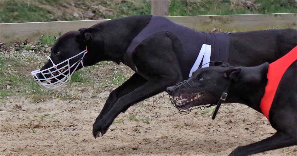 Divo och Tuffsy fick springa tillsammans i ett träningsjobb över 460 meter. Divo var extremt fokuserad och såg riktigt bra ut. Tuffsy bommade starten som vanligt med motorhare och när det inte är startboxar mitt i banan. Men sedan bet hon ihop och gjorde ett bra träningsjobb, det avstånd hon tappade till Divo i början höll hon hela vägen. Men Divo "vann" ganska klart och vi hoppas att han får en riktigt bra säsong.